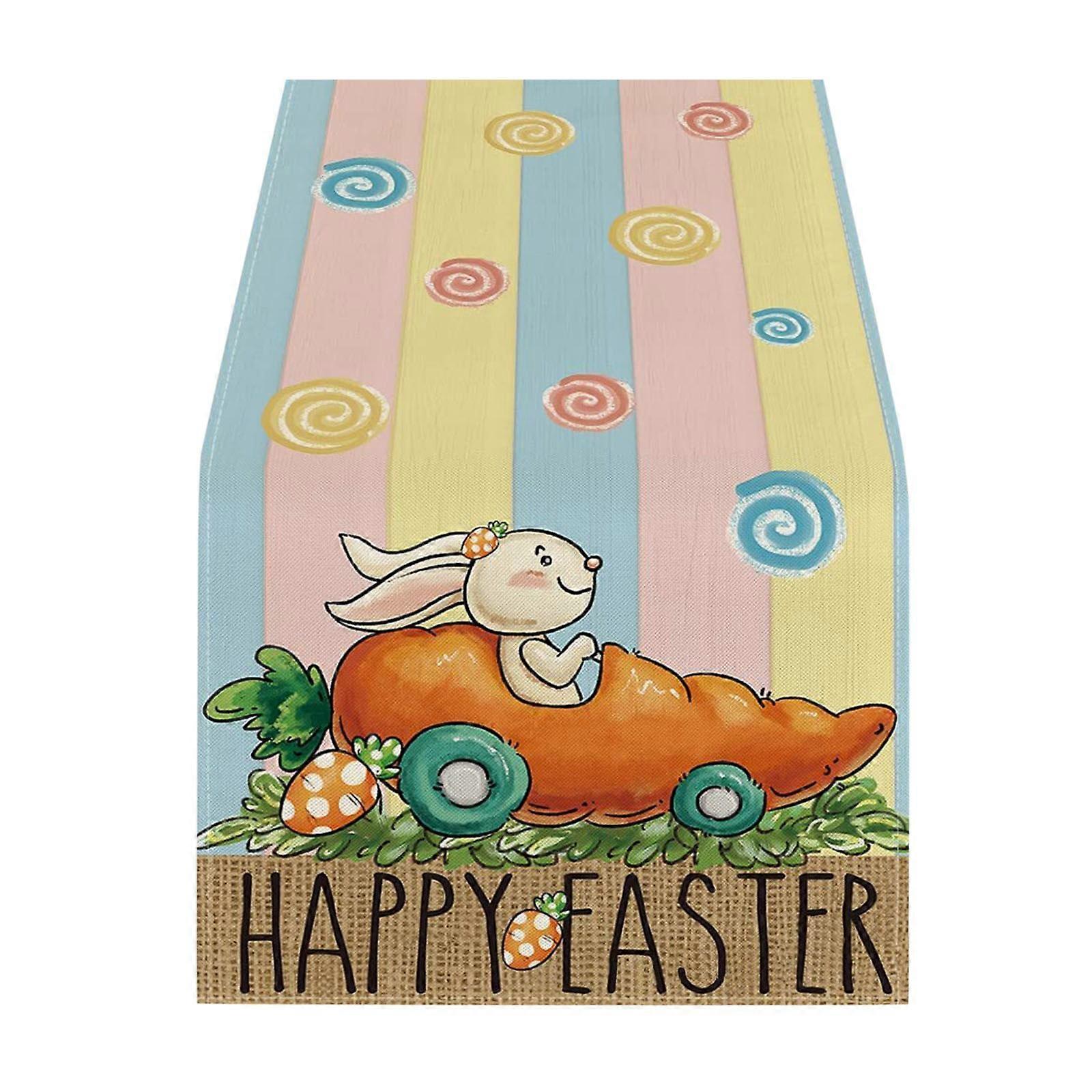 Yakbaofuo Decorative Table Banner Easter Decor Easter Table Flag Holiday Bunny Egg Little Printed Linen Tablecloth Easter Home Decorations