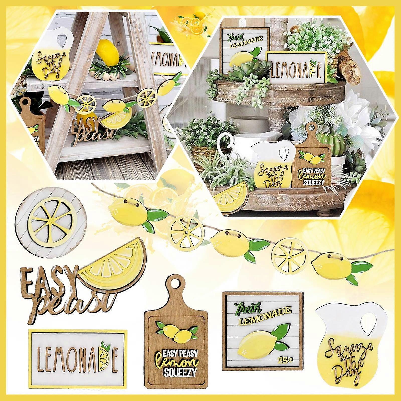 Mini Graduation Lemon Tiered Tray, Rustic Wooden Desktop Decor for Christmas Halloween, Compatible with Yakbaofuo Ornaments Signs