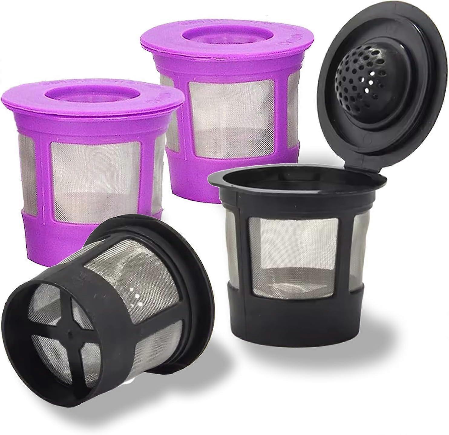 Reusable Coffee Filter for Coffee Makers (4 Pack Black & Purple) Compatible with Most Keurig Brewers - Easy to Clean