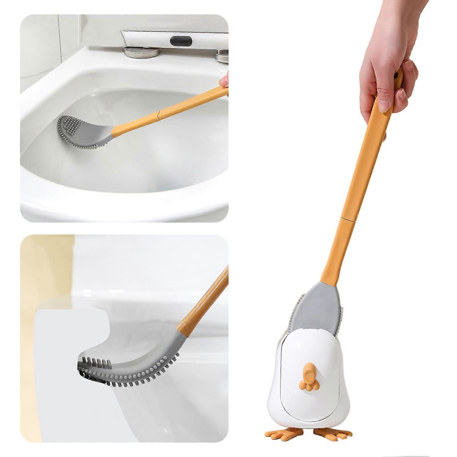 SUSUchens Cartoon Chick Design Toilet Brush with Wall Mounted Holder Bendable Head Silicone Toilet Brush Long Handle Toilet Scrubber Yellow
