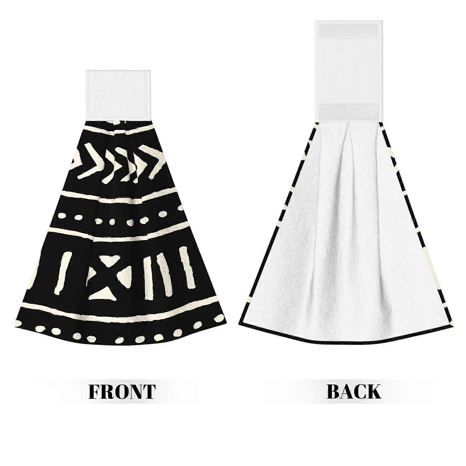 African Mud Cloth Black And White Hand Towels With Velcro Loop, Coral Velvet Hand Wipes For Kitchen & Bathroom