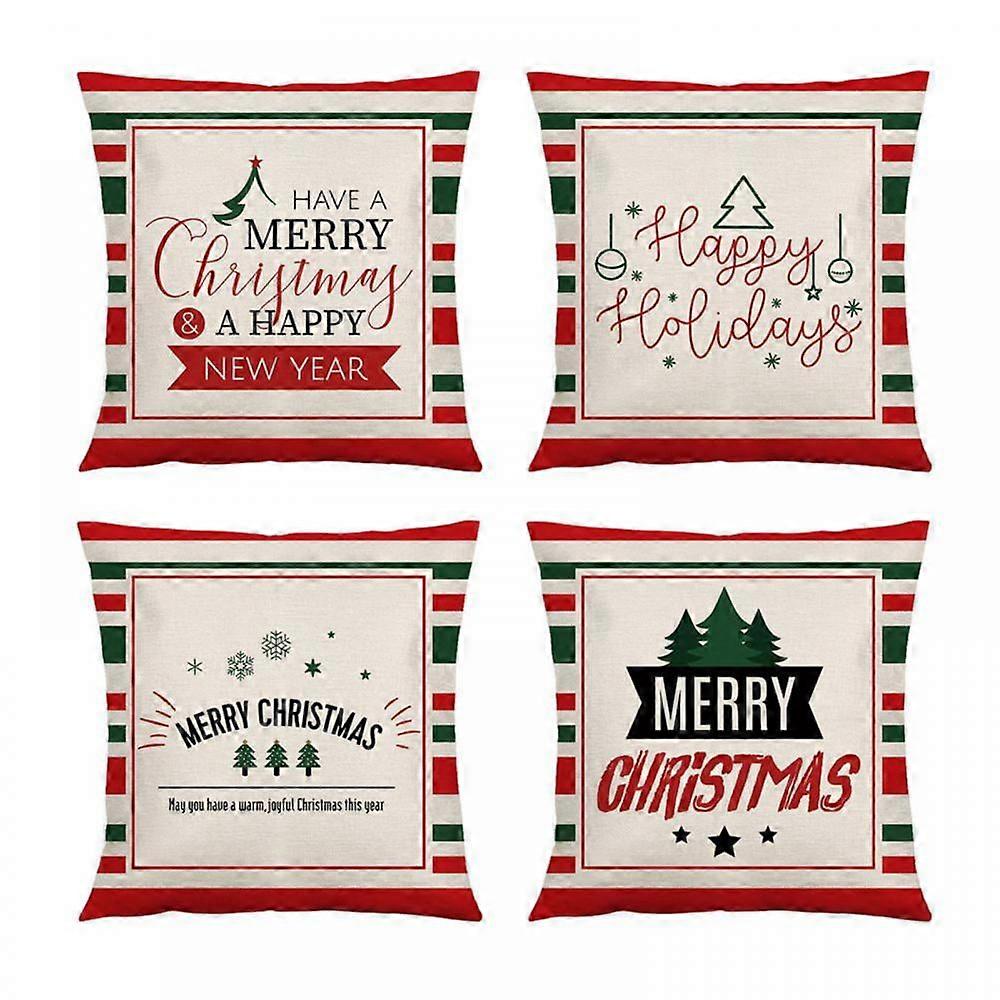 1Set Merry Christmas Throw Pillow Covers Check Plaid Cushion Cover Happy Christmas Red Xmas Tree Elk Tartan Cotton Linen Pillow Cover Sofa