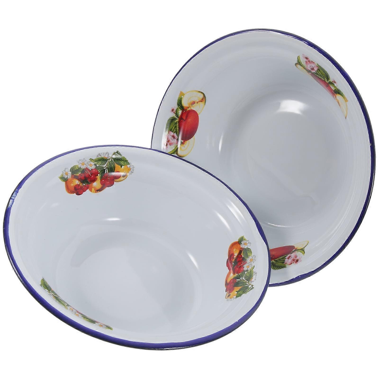 2 Pcs Rolled Enamel Basin Veggie Tray Household Basin Serving Tray Round Vintage Soup Bowl Antique Kitchenware BBQ Basin