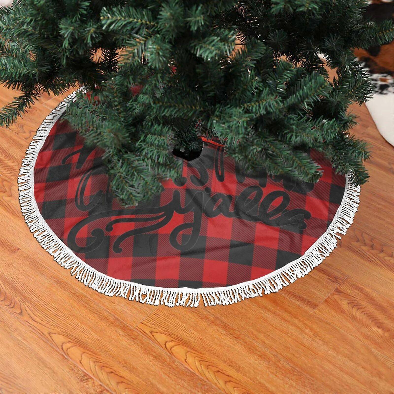 Christmas Fringed Lace Tree Skirt, Merry Christmas Merry Christmas Soft, Light, Good Touch Tree Skirt 48"