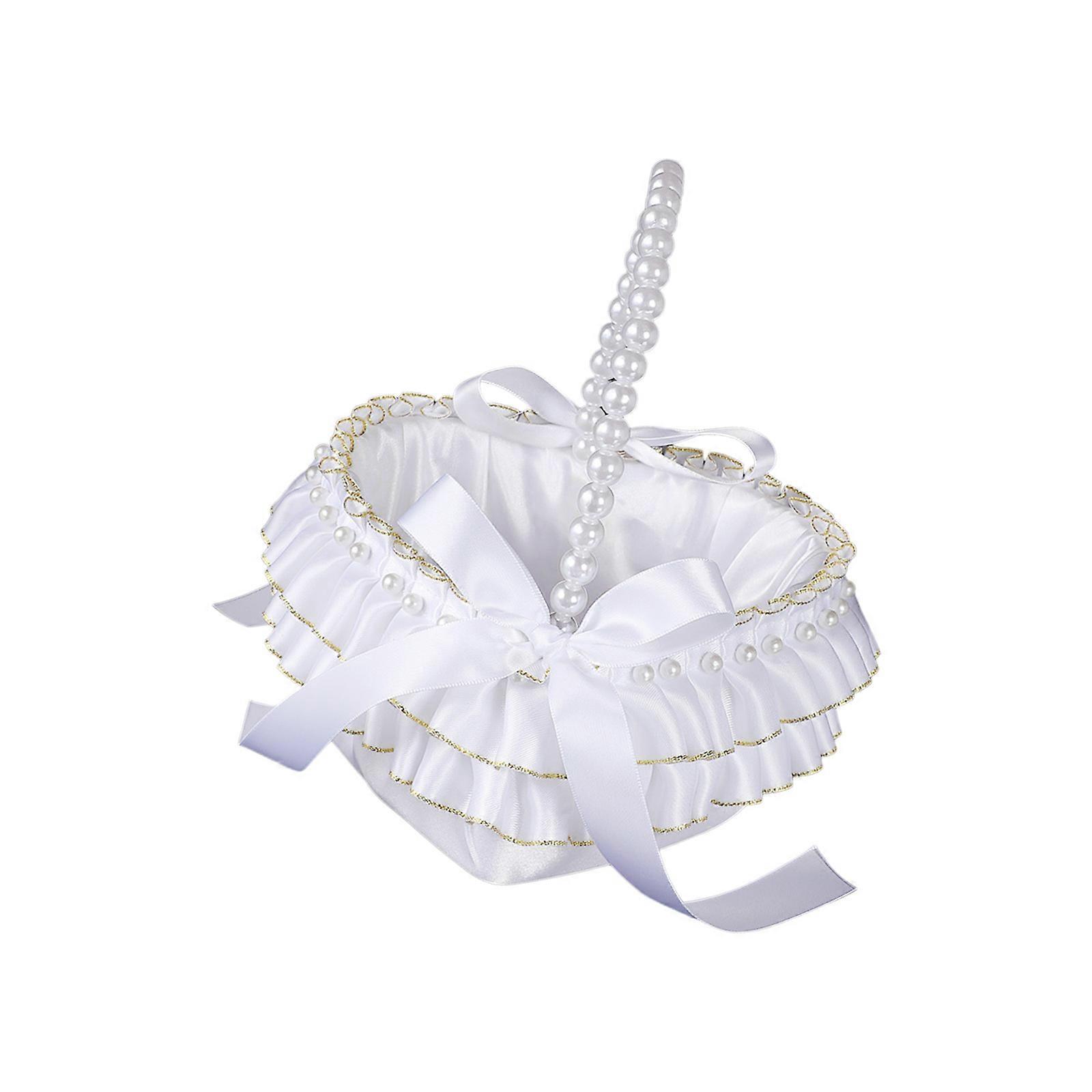 Flower Girls Basket Wedding Accessory With Artificial Pearls Bowknot Ornament For Wedding Bride Petal Scattering Occasion Multicolor