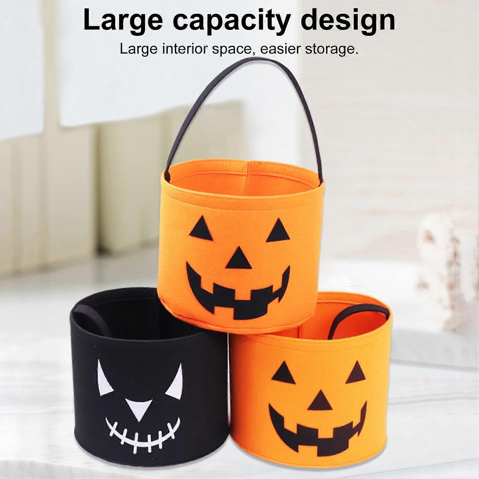 SUSUchens Halloween Candy Bucket Trick or Treat Party Pumpkin Bucket Candy Holder Felt Halloween Goody Storage Holder for Party Favors Black
