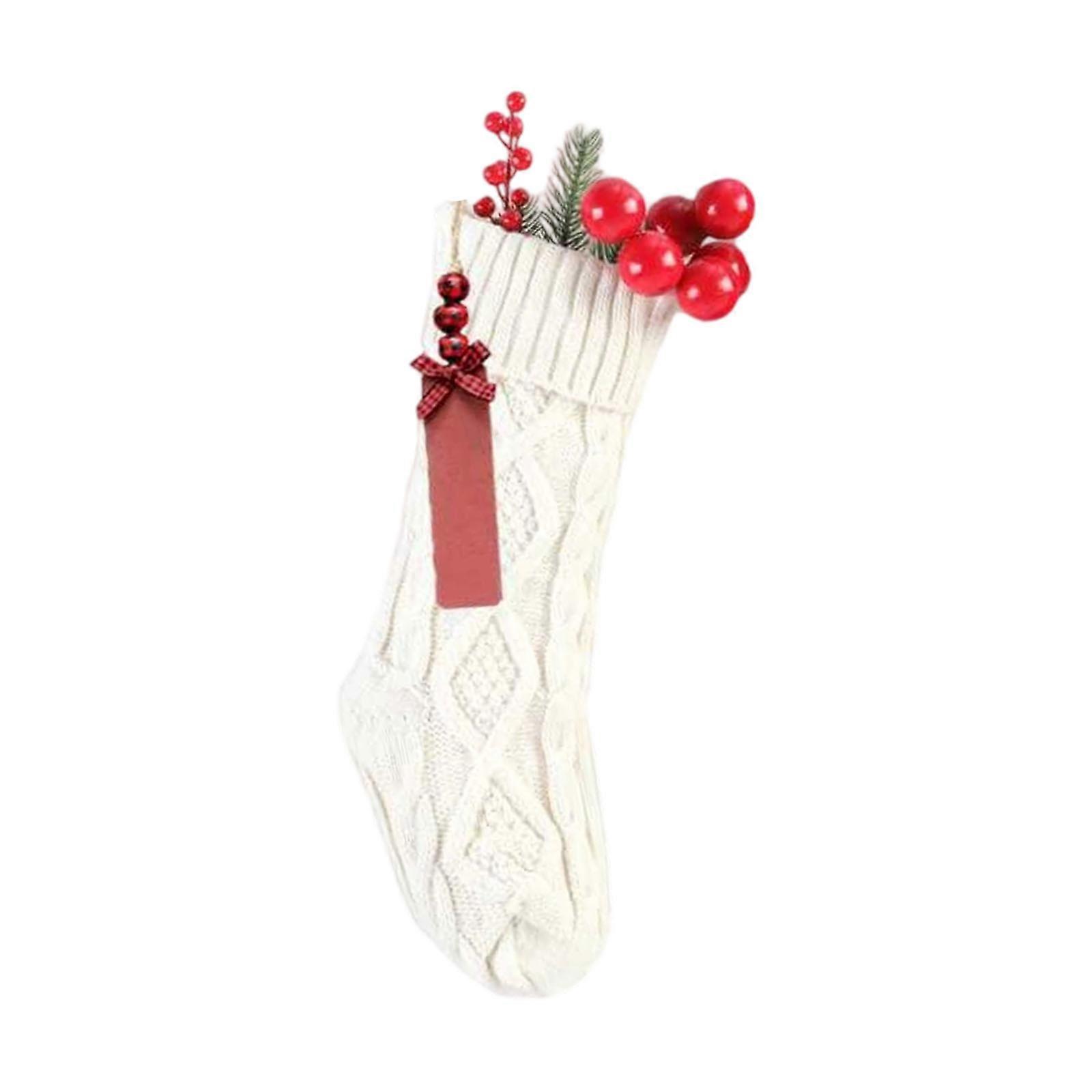 Elegant Knit Stocking Ornament For Christmas Tree Decorations Gift Candy Storage Bag With Hanging Loop White