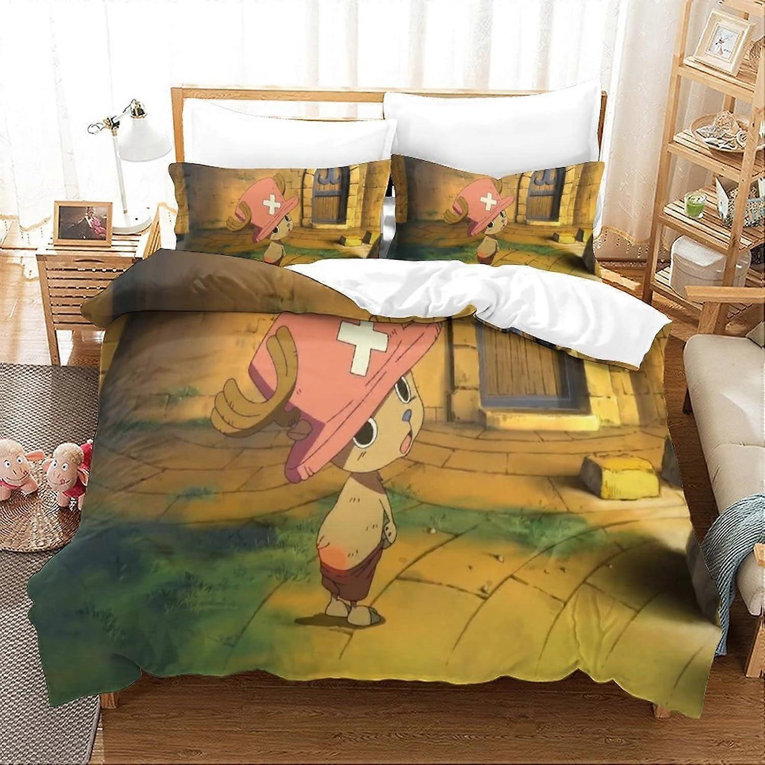 Parure De Lit Anime Luffy Duvet Cover Set 3D Printe Parure De Lit Anime Luffy Chopper Bedding Quilt Duvet Cover , Soft Microfiber King