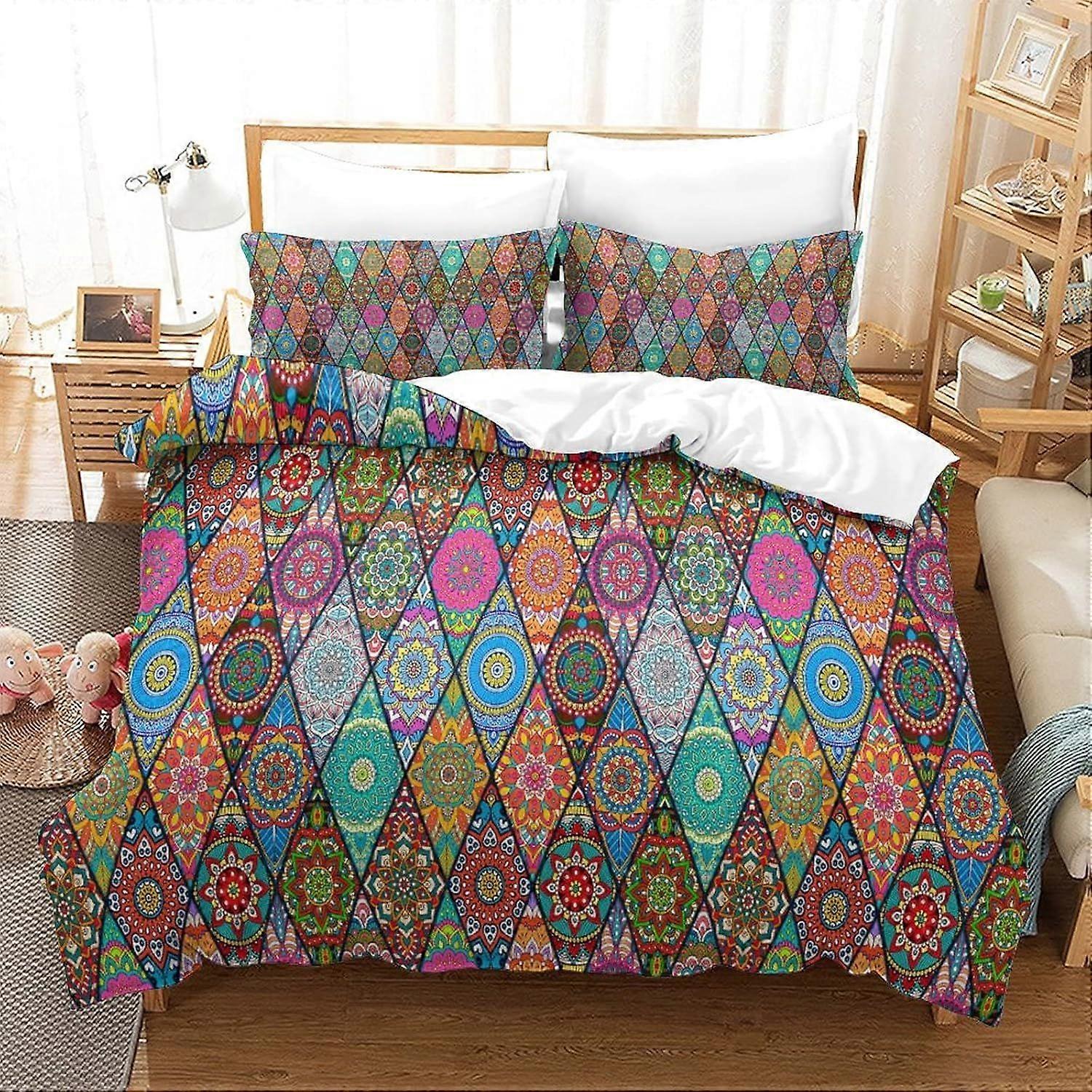 Bohemian Mandala Duvet Cover Set Bedding Quilt Boho Chic Mandala Colorful Flowers Flower Pattern Cover Set with Shames Soft Microfiber Xmas Bedding Se