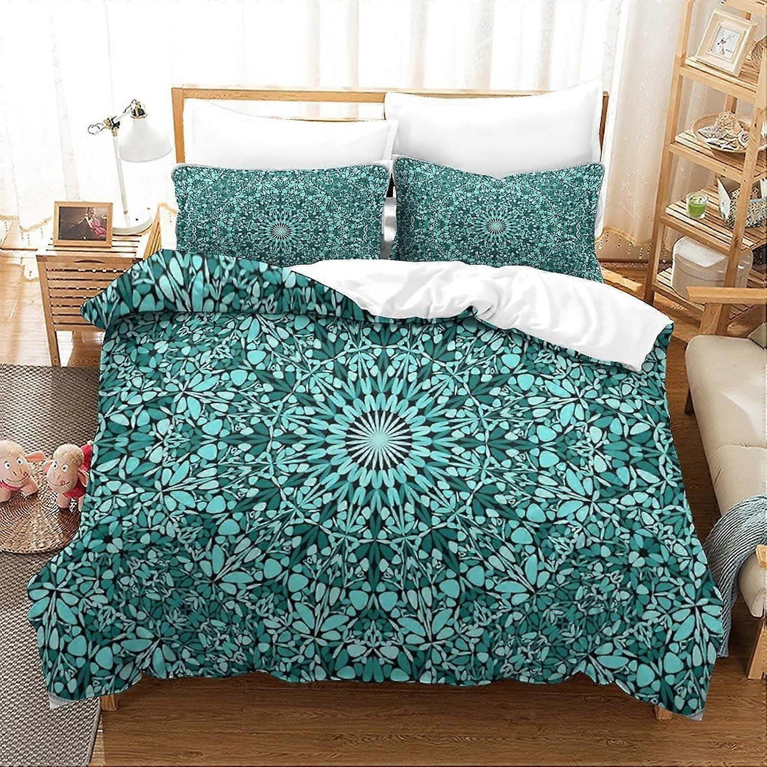 Bohemian Mandala Duvet Cover Set Bedding Quilt Boho Chic Mandala Colorful Flowers Flower Pattern Cover Set with Shames Soft Microfiber Xmas Bedding Se