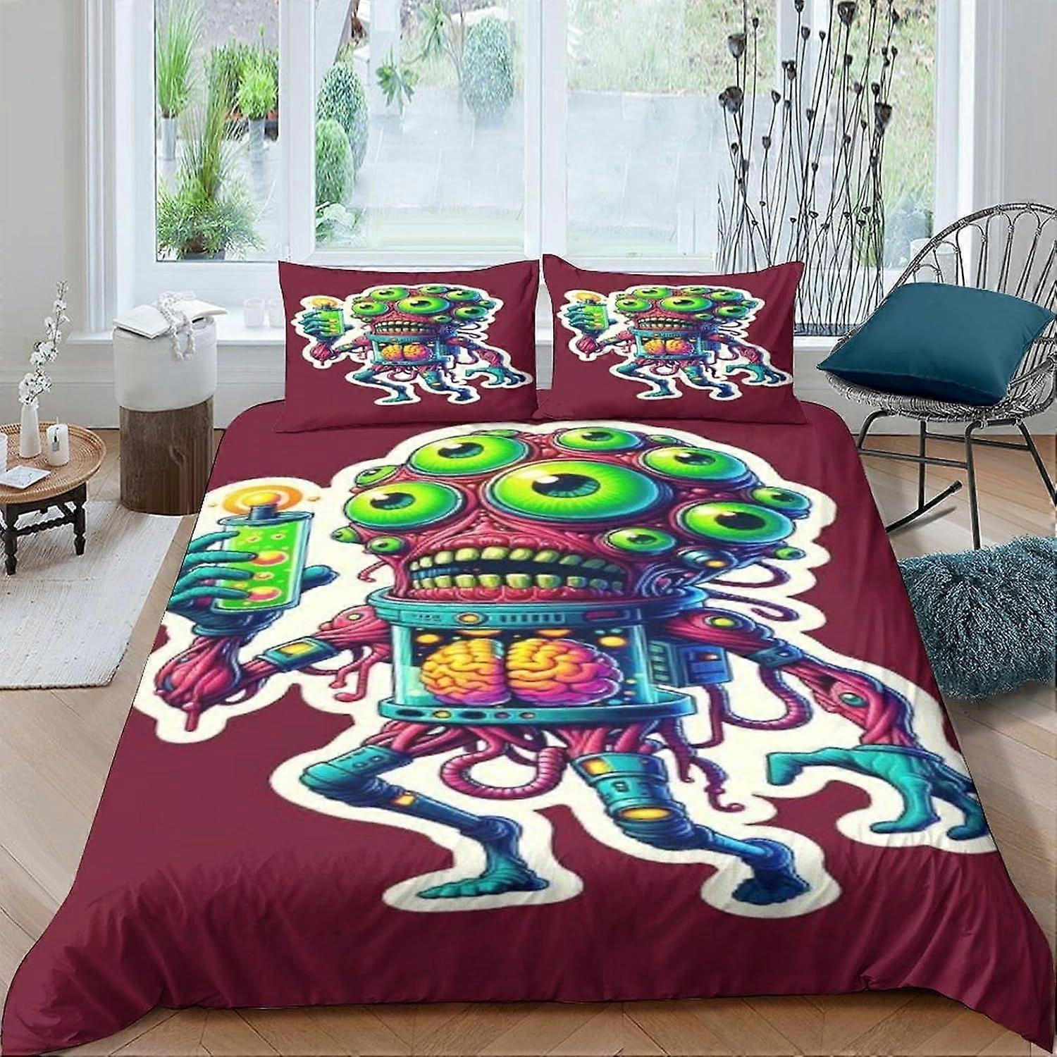 monster Duvet Cover alien Bedding Set Comforter Cover alien Pattern Bedspread Cover Room Decor Double