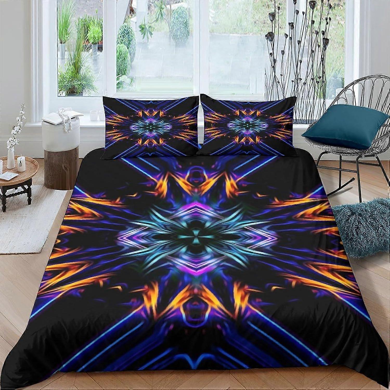 geometry Duvet Cover 3D neon Printed Bedding Quilt neon Duvet Cover with Zipper Closure Soft Microfiber King