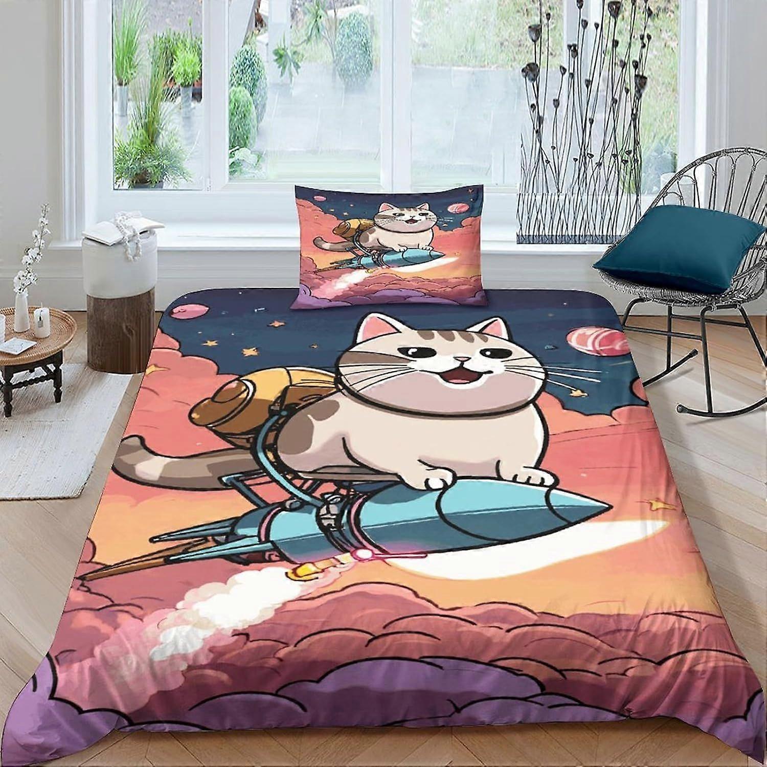 cat Duvet Cover 3D Cartoon Printed Bedding Quilt Cartoon Duvet Cover with Zipper Closure Soft Microfiber Single