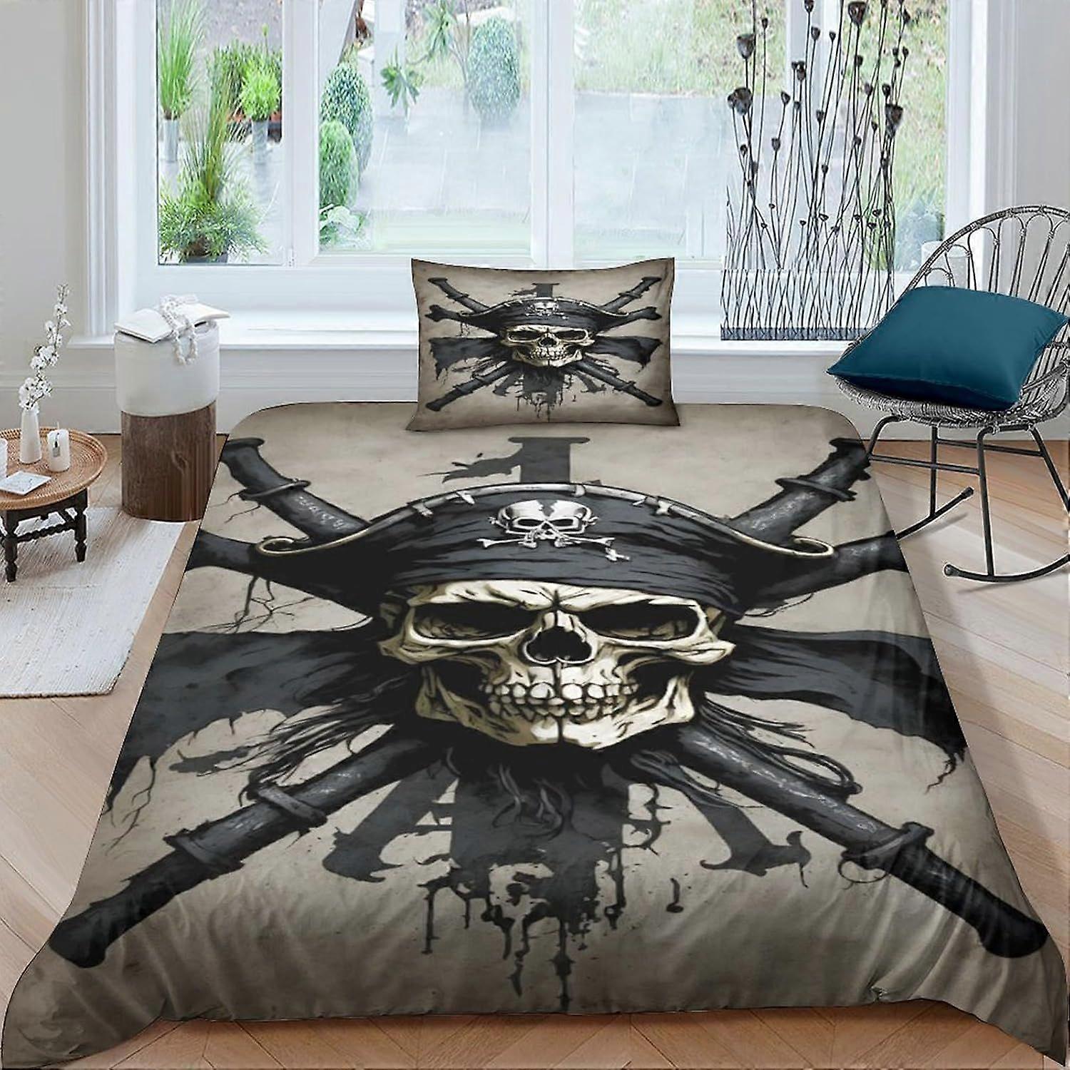 skeleton Duvet Cover pirate Printed Bedding Set Soft Microfiber pirate Quilt Cover with Zipper Closure Single
