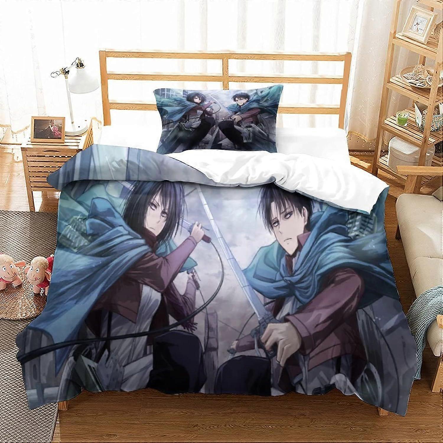 Anime Attack on Titan Duvet Cover Set Luxe 3D Printed Bedding Shingeki No Kyojin Cartoon Characters Quilt Cover for Bedding , Ultra Soft Microfiber Se