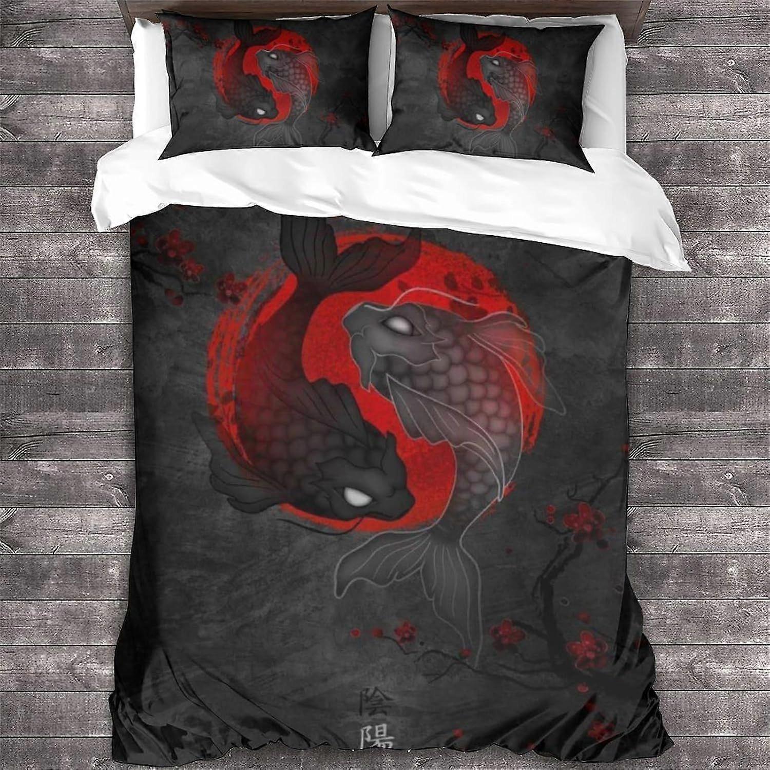 Fish Duvet Cover 3D yin and yang Printed Bedding Set 3Pcs Microfiber yin and yang Quilt Cover with Zipper Closure Double