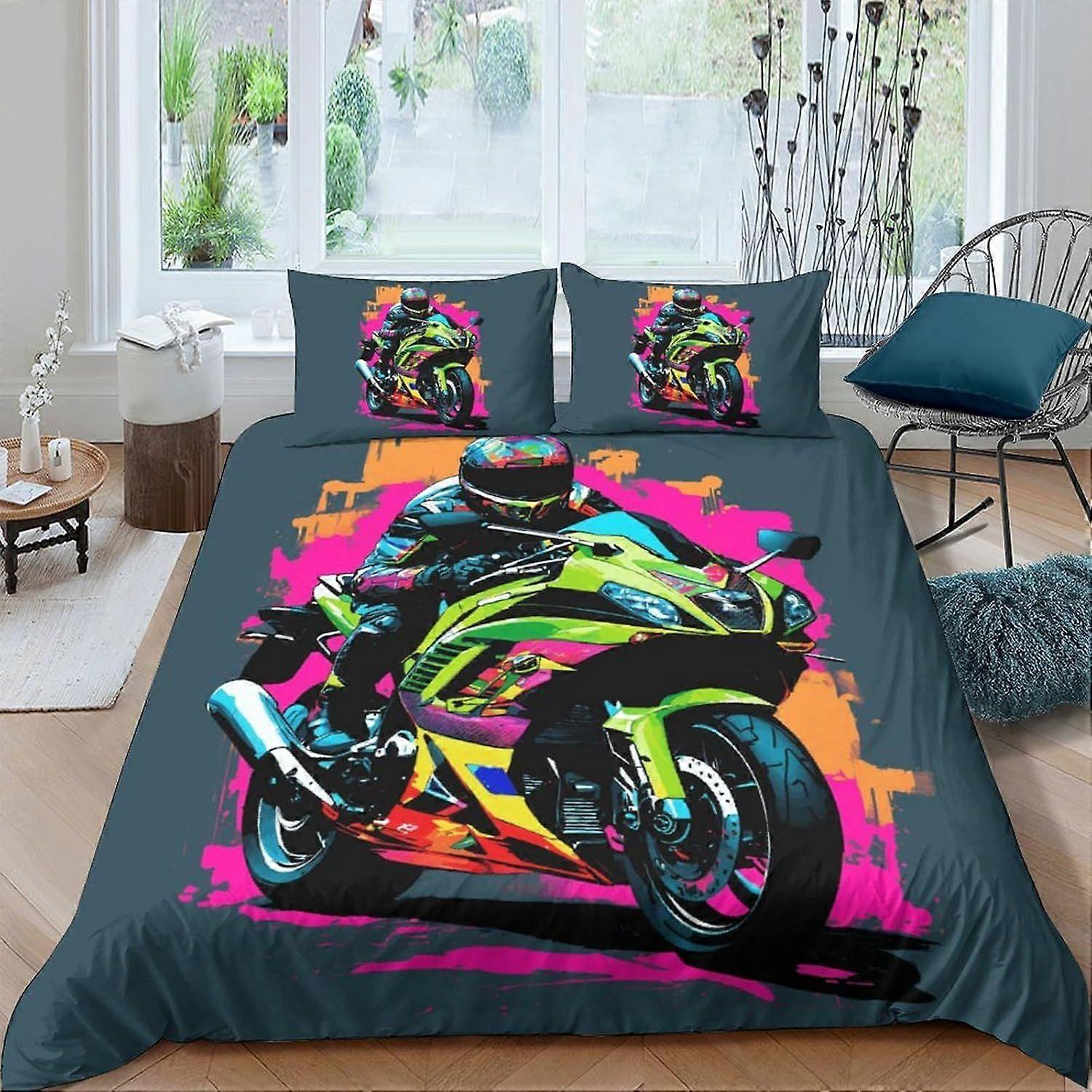 motorcycle Duvet Cover cross country Print Design Bedding Set Soft Microfiber with Zipper Closure cross country Quilt Cover Pillowcases Double