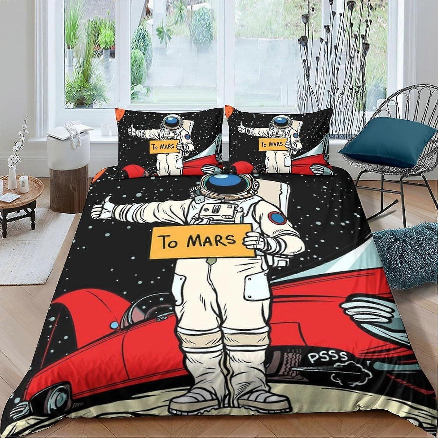 astronaut Duvet Cover Set space Printed Bedding Set space Comforter Cover with Pillow Shams Microfiber Quilt Cover Zipper 3 Pcs Double