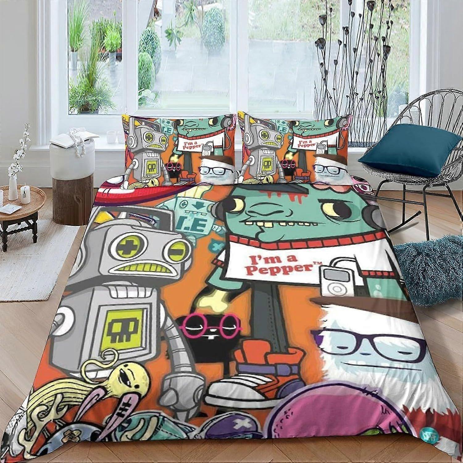 robot Duvet Cover Set Cartoon Bedding Set 3 PiecesSoft Microfiber 3D Cartoon Pattern Quilt Cover Zipper Closure with Pillow Cases