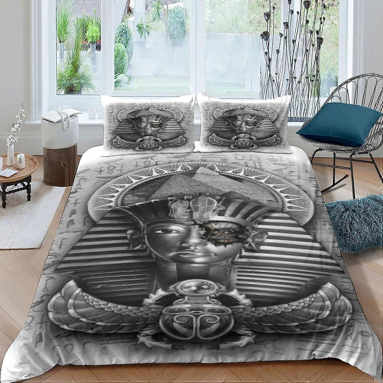 Pharaoh Bedding Egypt Duvet Cover 3D Egypt Print Bedding Comforter Cover for Teens Microfiber 3-Piece Quilt Cover Decorated King