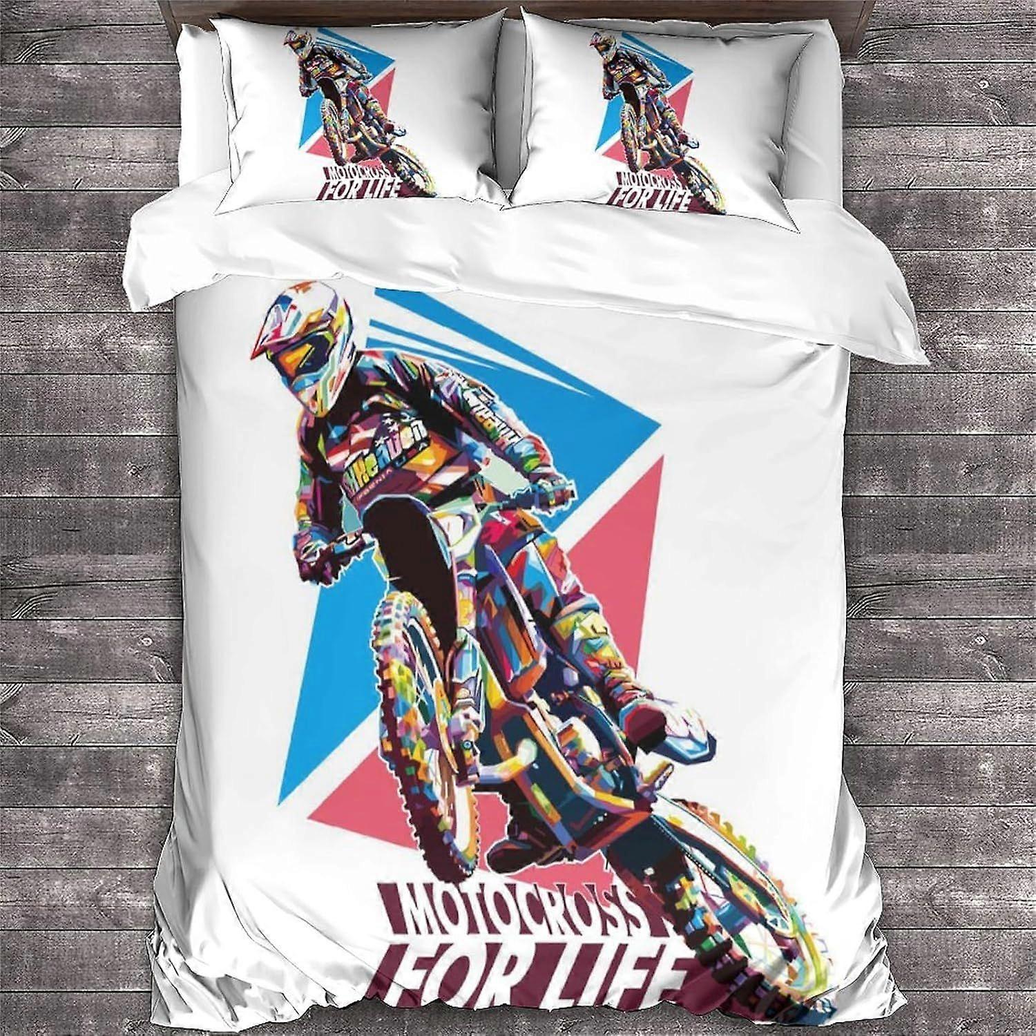 motorcycle Duvet Cover 3D Motocross Printed Bedding Set 3Pcs Microfiber Motocross Quilt Cover with Zipper Closure Double