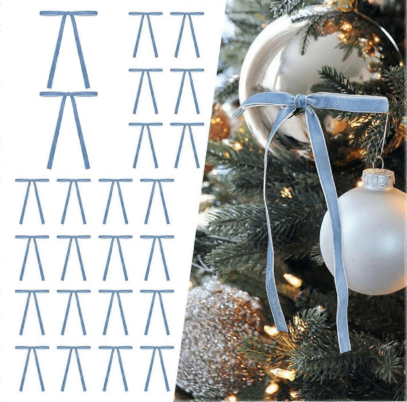 Winysin 24 Pcs Velvet Christmas Tree Bows, 3/8" Width 5x7", Compatible with Door Garland, Vintage Wreath, Flock Ribbon, Skein Ornaments