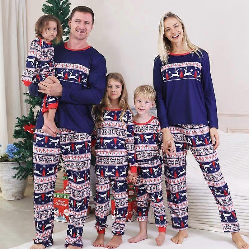 2 Colors Family Matching Christmas Pajamas Set, Reindeer Print 2-Piece Pajamas for Mom Dad and Kids, Cozy Holiday Sleepwear