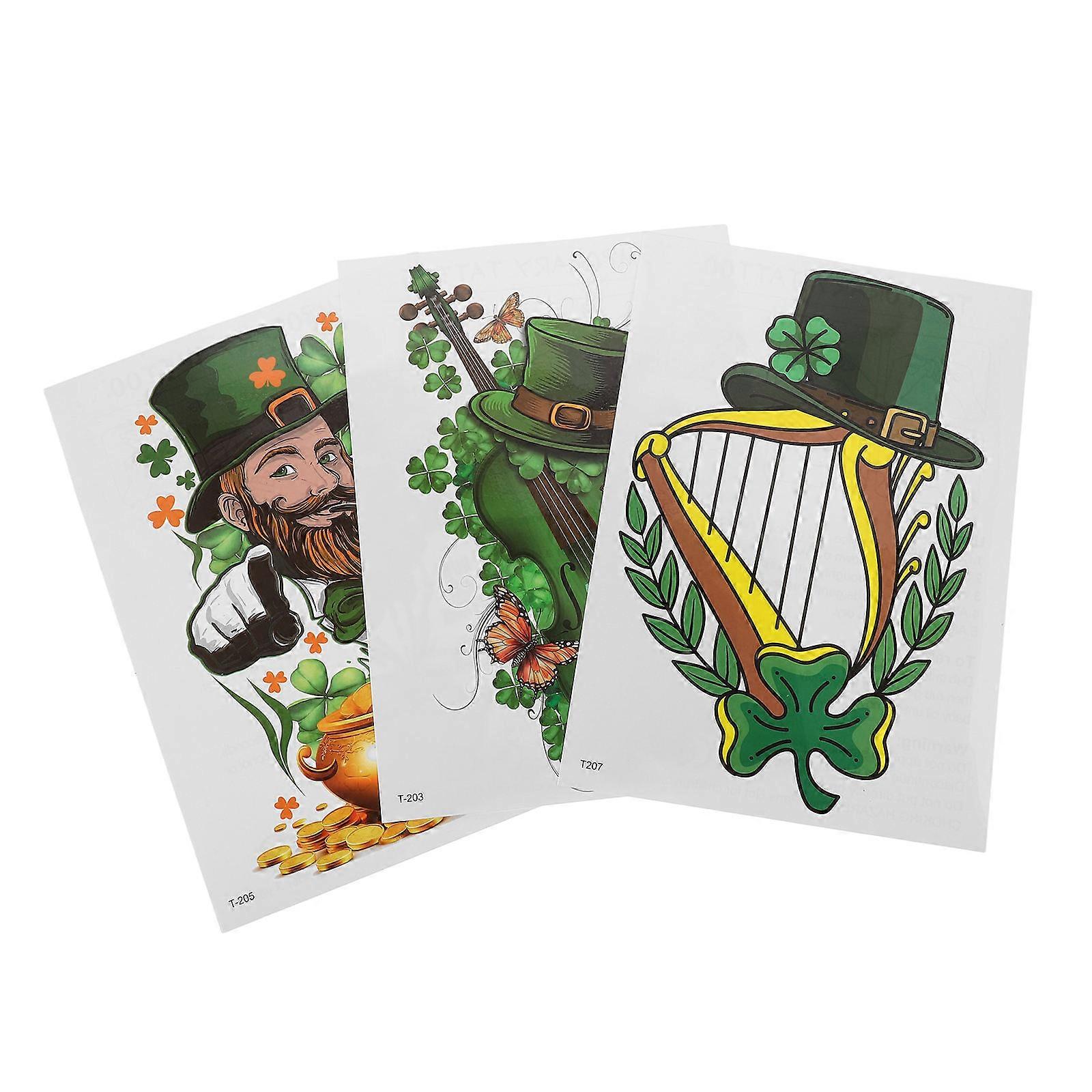 Green Irish Shamrock Temporary Stickers for St Patrick's Day Events 3Pcs