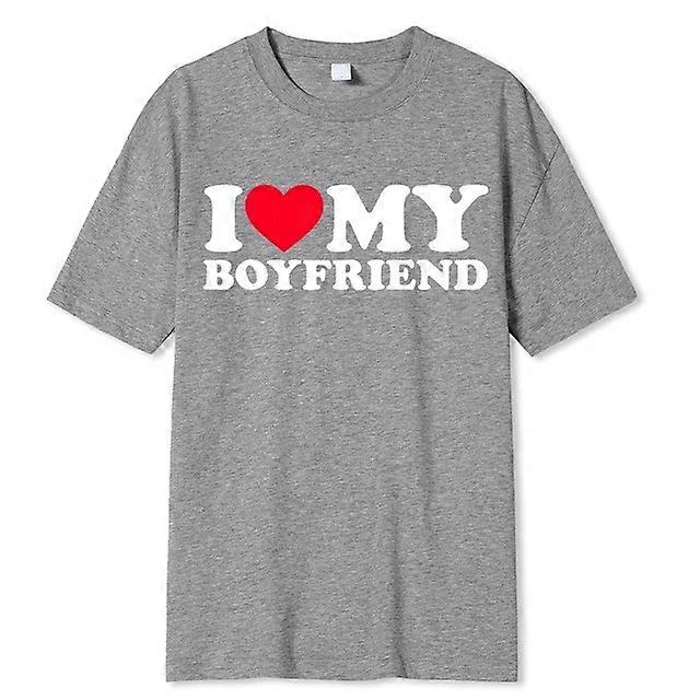 I Love My Boyfriend Girlfriend Funny Printed Short Sleeve Tshirt Light Grey