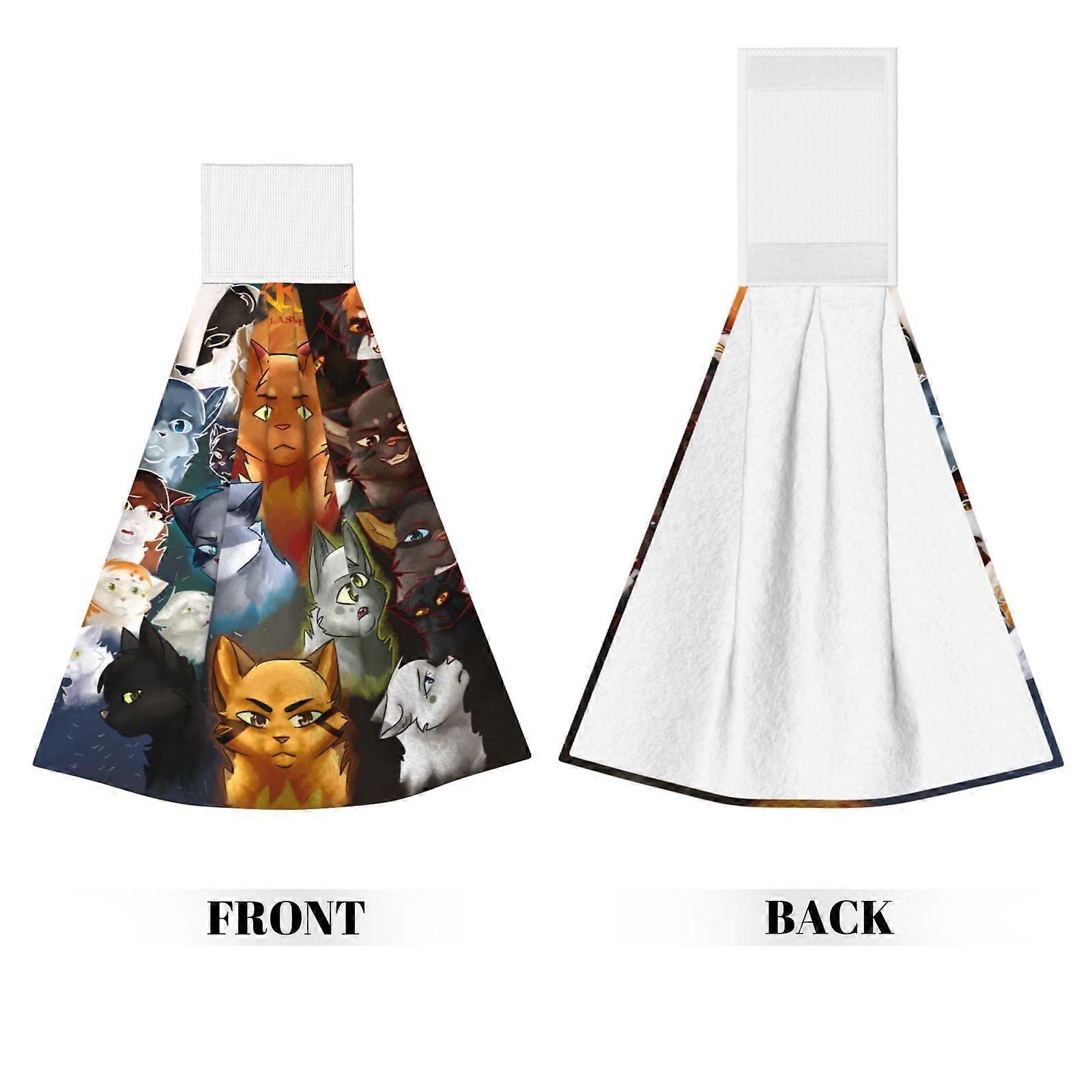Warriors Cats Hand Towels With Velcro Loop, Coral Velvet Hand Wipes For Kitchen & Bathroom