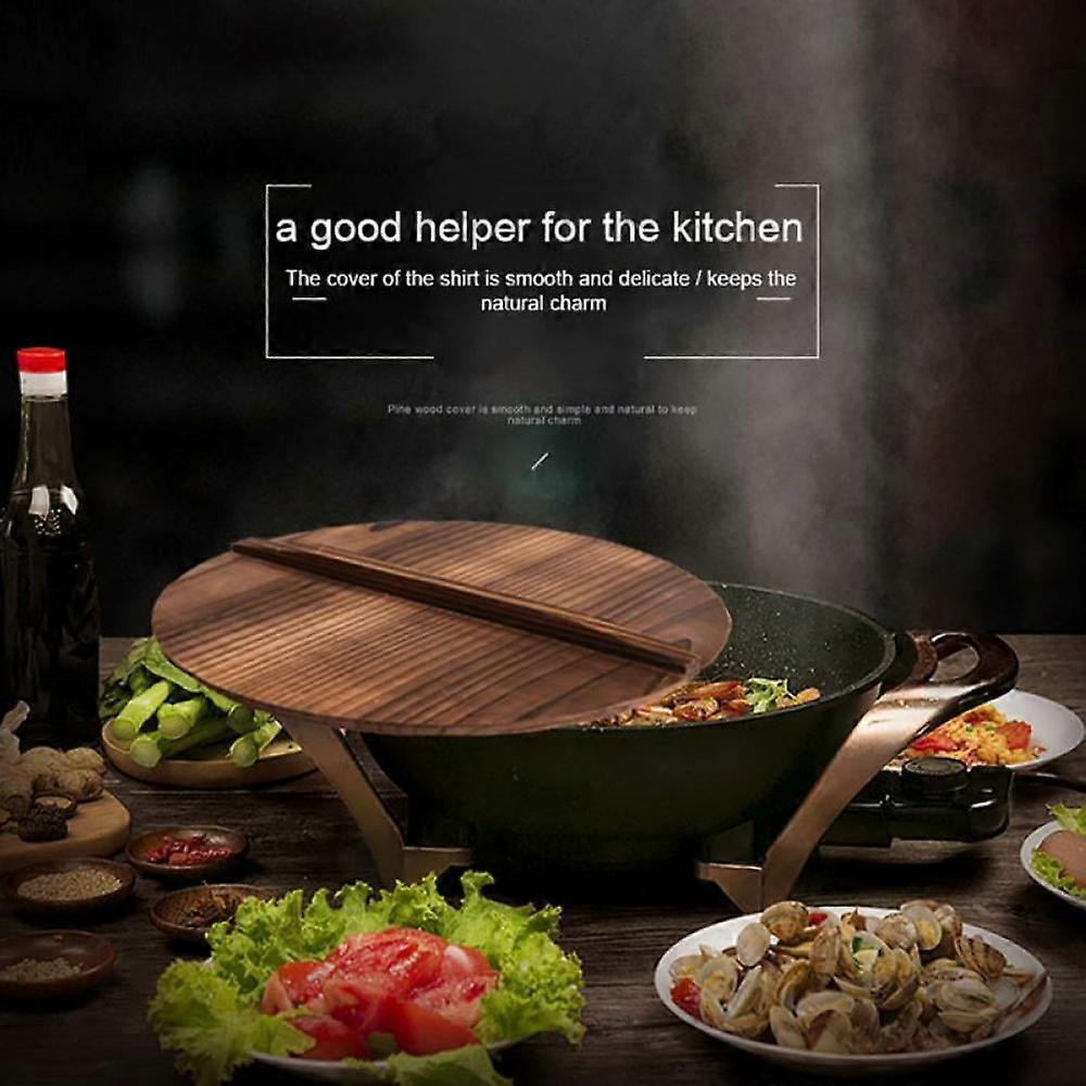 Feiona Pot Cover Pan Lid With Large Handle Anti-Hot Anti-Spillover Lid,Natural Wooden