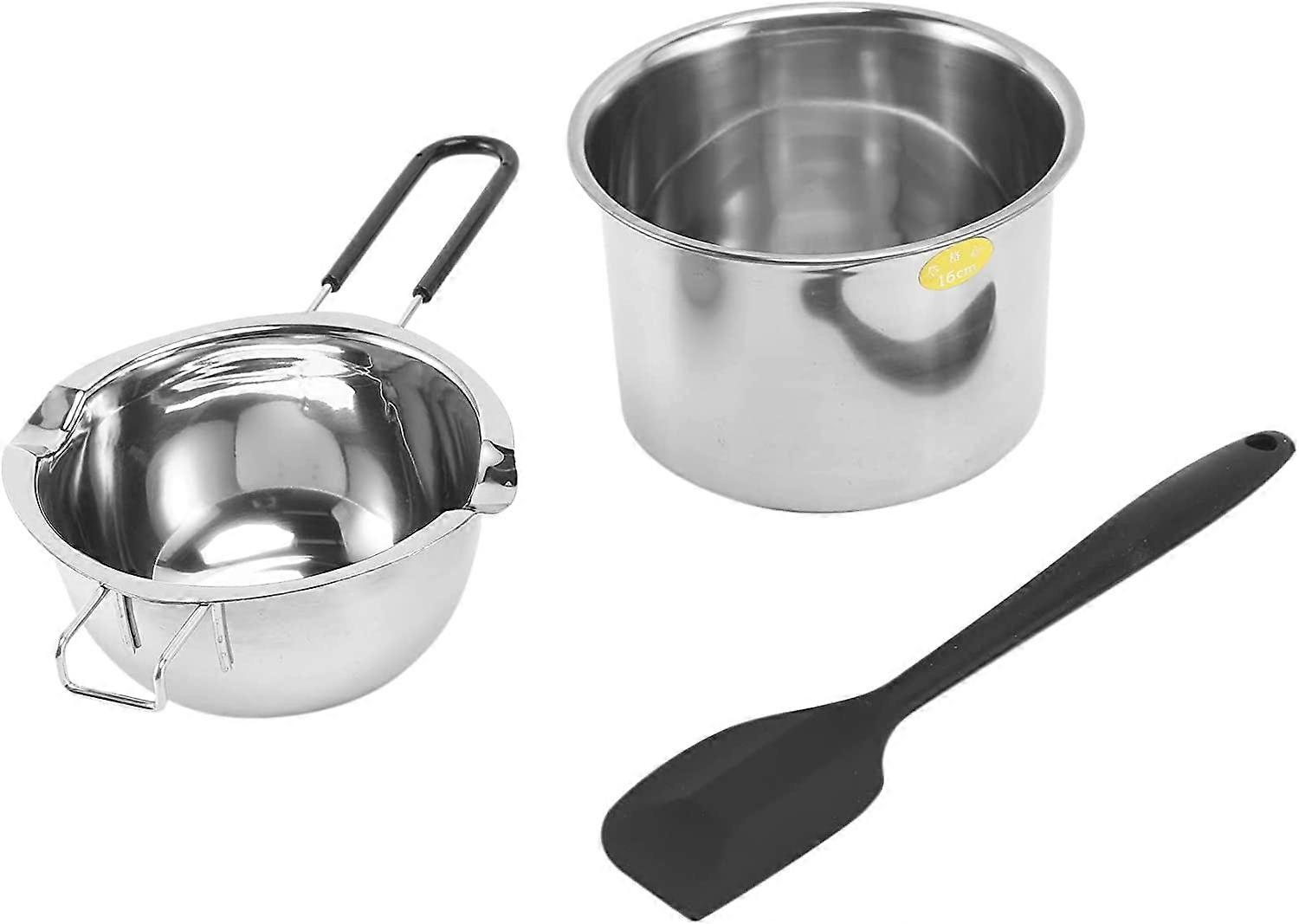 Colour: silver Material: 304 stainless steel Contents: 1 * Inner pot 1 * Outer pot diameter 16cm 1 * Silicone (black handle, black ) Only the above content, other are not included. Note: Light and different displays may the color of the item in the a little different from the real . The measurement allowed is +/- 1-3cm. [ Double Boiler Pot Set Include ] Capacity: 600 ML/1400ML (2 kinds of capacity to all needs). Proper size easier to operate. [Convenient to ]Silicone front to prevent sliding , double pour spouts both sides, flat bottom and silicone heat- handle stayed while over heat. And silicone is great Mix or stir thick batters, yet be flexible enough for scraping sauces or scrambling eggs. [Multi-Functions & WIDELY ]You can put this 600ml double boiler on top of the big one, The working principle of using the lower layer of water vapor to conduct heat better, so it will be more fast for melting or steaming a small amount of , , cheese and heated sauces etc. [ All-round compatible & Easy to clean ]The double boiler pot is for all types of kitchen tops, including induction cooktops, electric, ceramic, and halogen kitchens.
