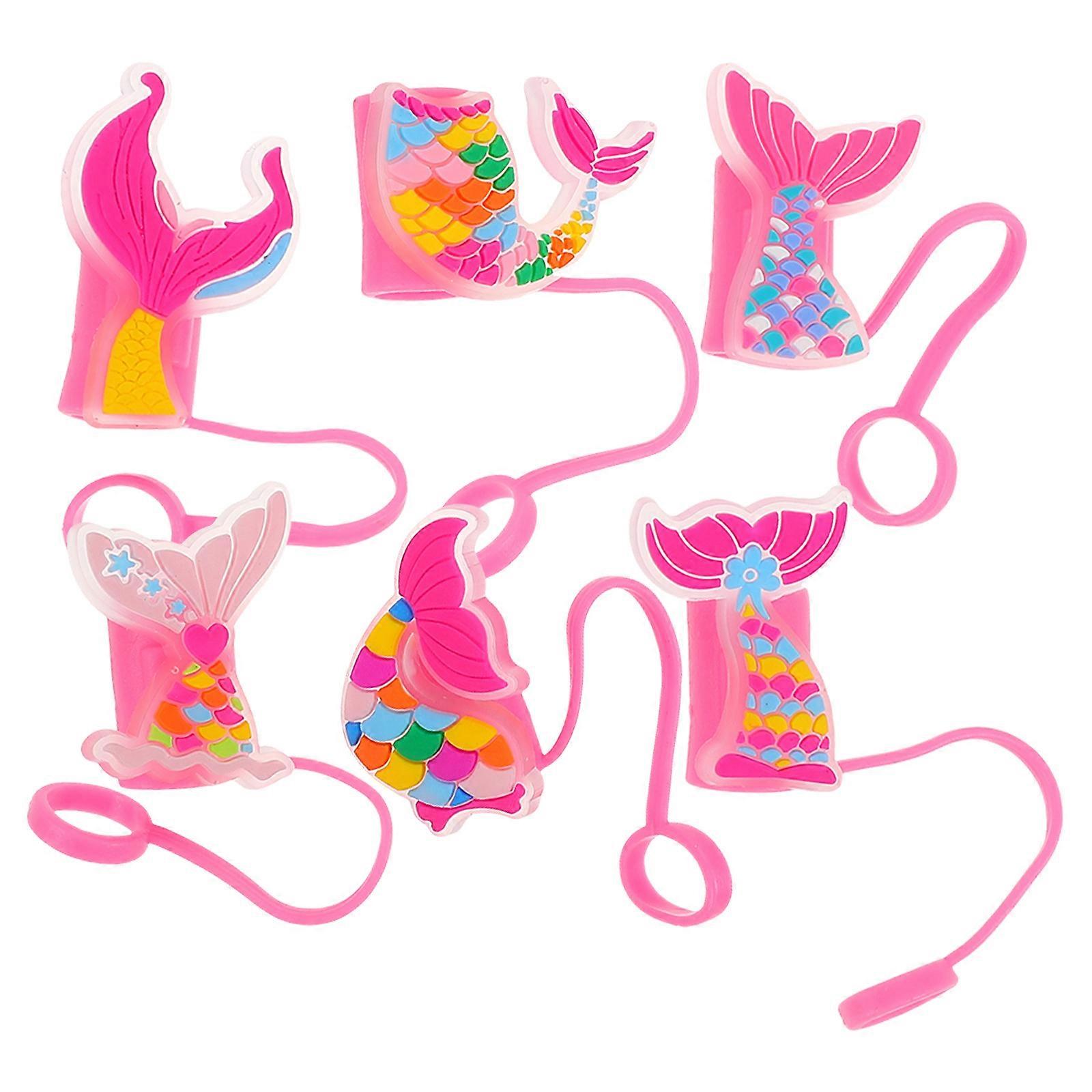 Pink Silicone Straw Cover Absorbing Tips with 6Pcs Reusable Animal Designs