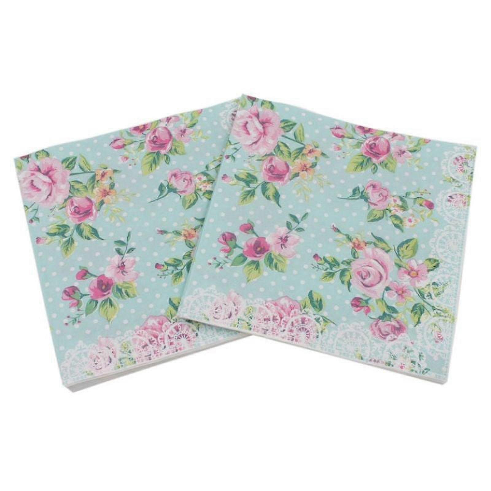 40 Pack Paper Napkins for Bridal Shower Tea Party Birthday or Wedding, Eiffel Tower and Literary Purple Flowers
