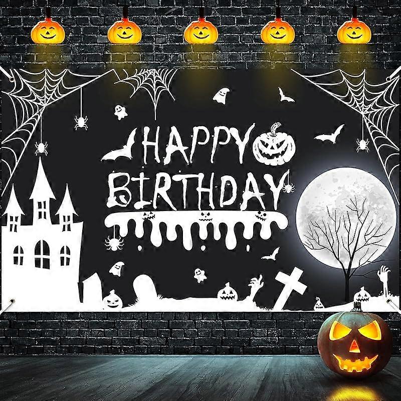 Halloween Birthday Banner 71x44Inches, Black & White Pumpkin Spider Theme Party Backdrop, compatible with Halloween & Birthday Decor