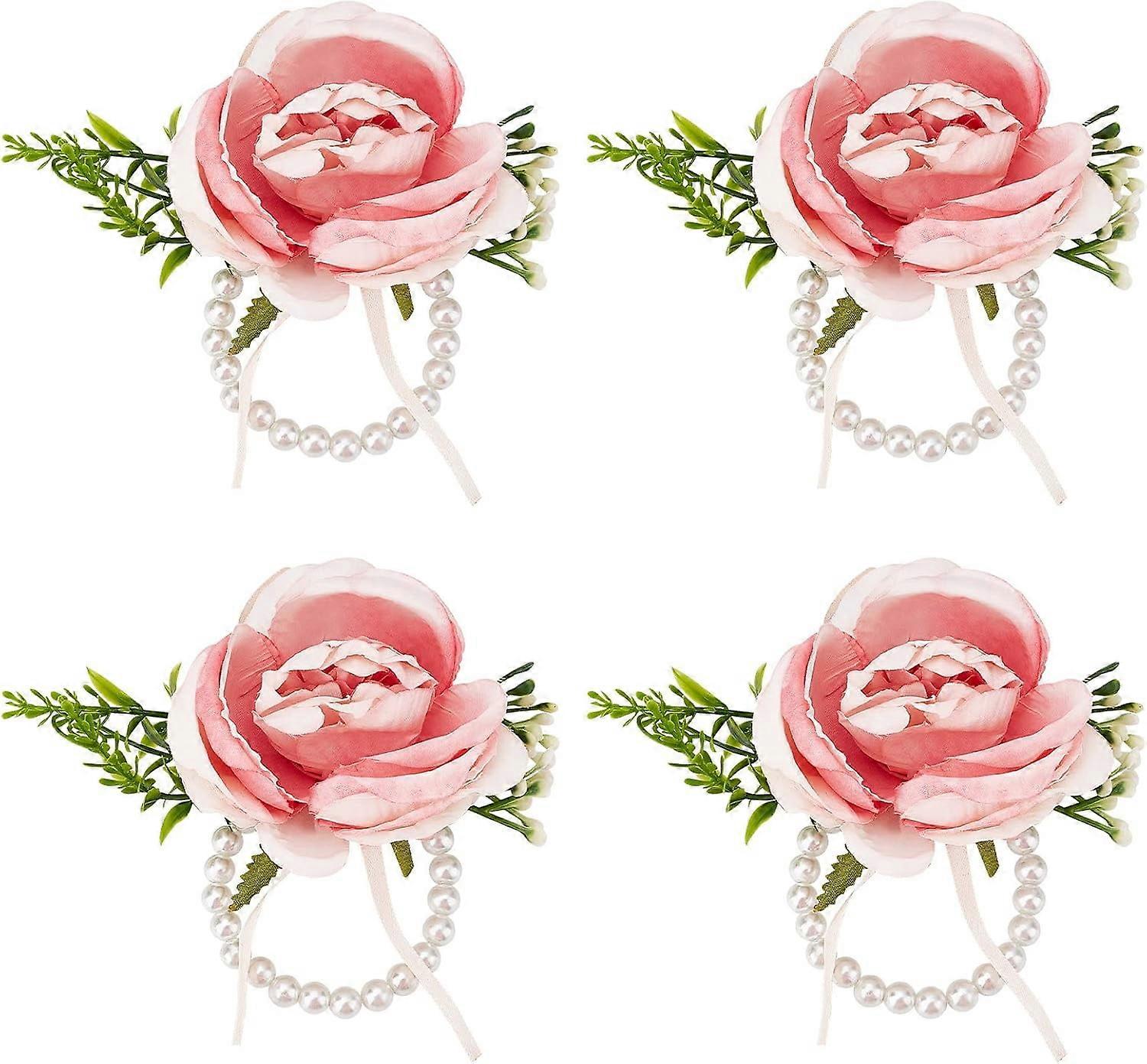 4pcs Wedding Wrist Corsage Pink Rose Pearl Flower Bracelet for Bride Bridesmaid Party Prom Festival Decorations compatible with DIY
