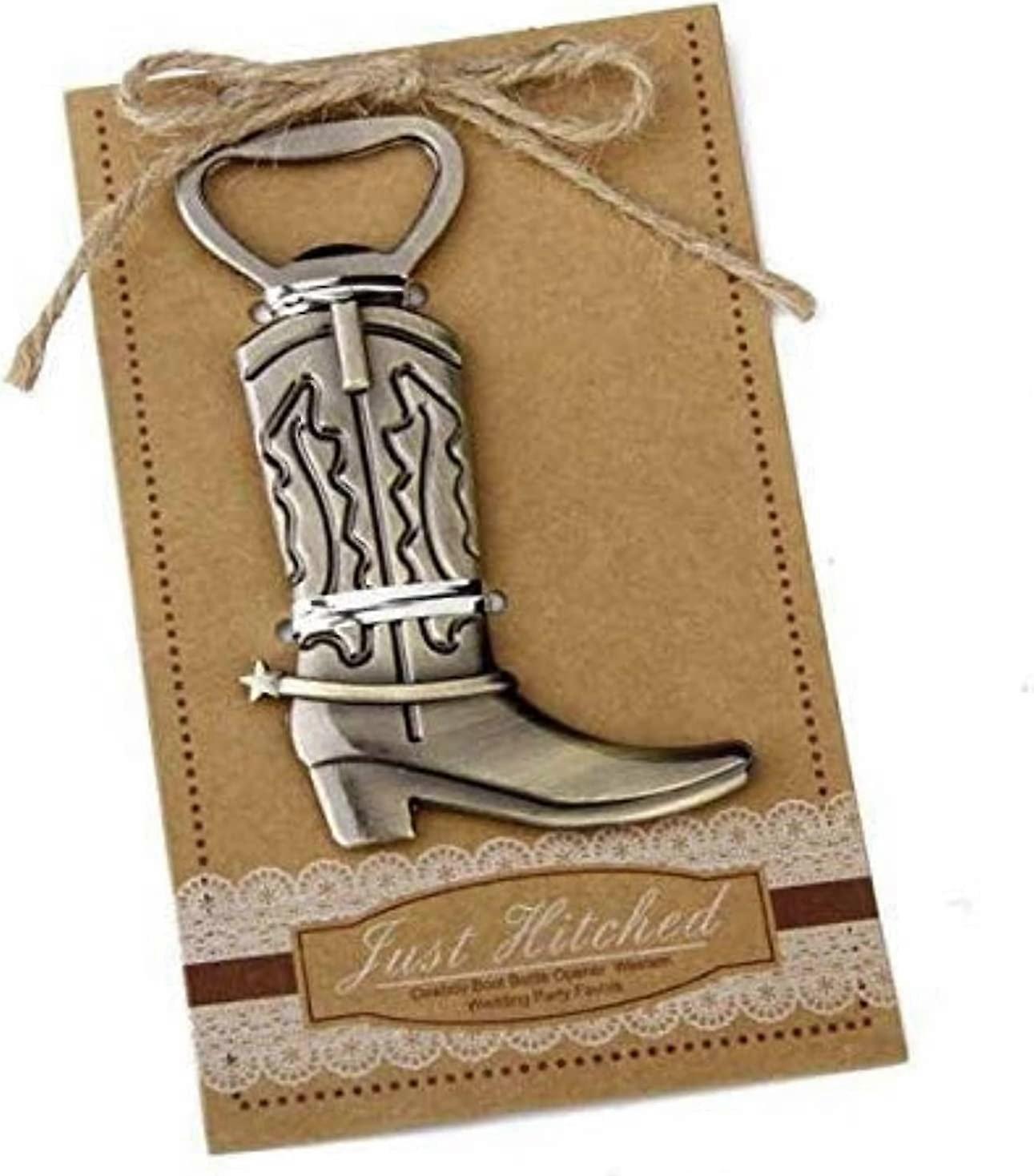 The perfect party favor for your special day! We want your party favors to be a classy, quality, and memorable gift for your guests. Give your guests these beautiful bottle openers so that they will remember your event forever! -Size:3.5 x 2.0 x 0.11 inches,Color:antique bronze -Package included: 20 pcs cowboy boots shaped beer bottle opener -Each opener weights 1.5 oz -Material:made from alloy,which is easy to carry and use -It is perfect for wedding and party favors, and can be sent to someone you care about as a gift. -100% Brand new and high quality These beautiful retro style beer bottle opener party favors also make great vintage decorations for your wedding or other event. Our cowboy boots bottle openers are made of strong, beautifully crafted alloy metal. 100% Brand new and high quality.They are very attractive and durable. The boots bottle opener favors with card tags add OPP bags,it's ready to be given away. Perfect choice as give aways for wedding or party.