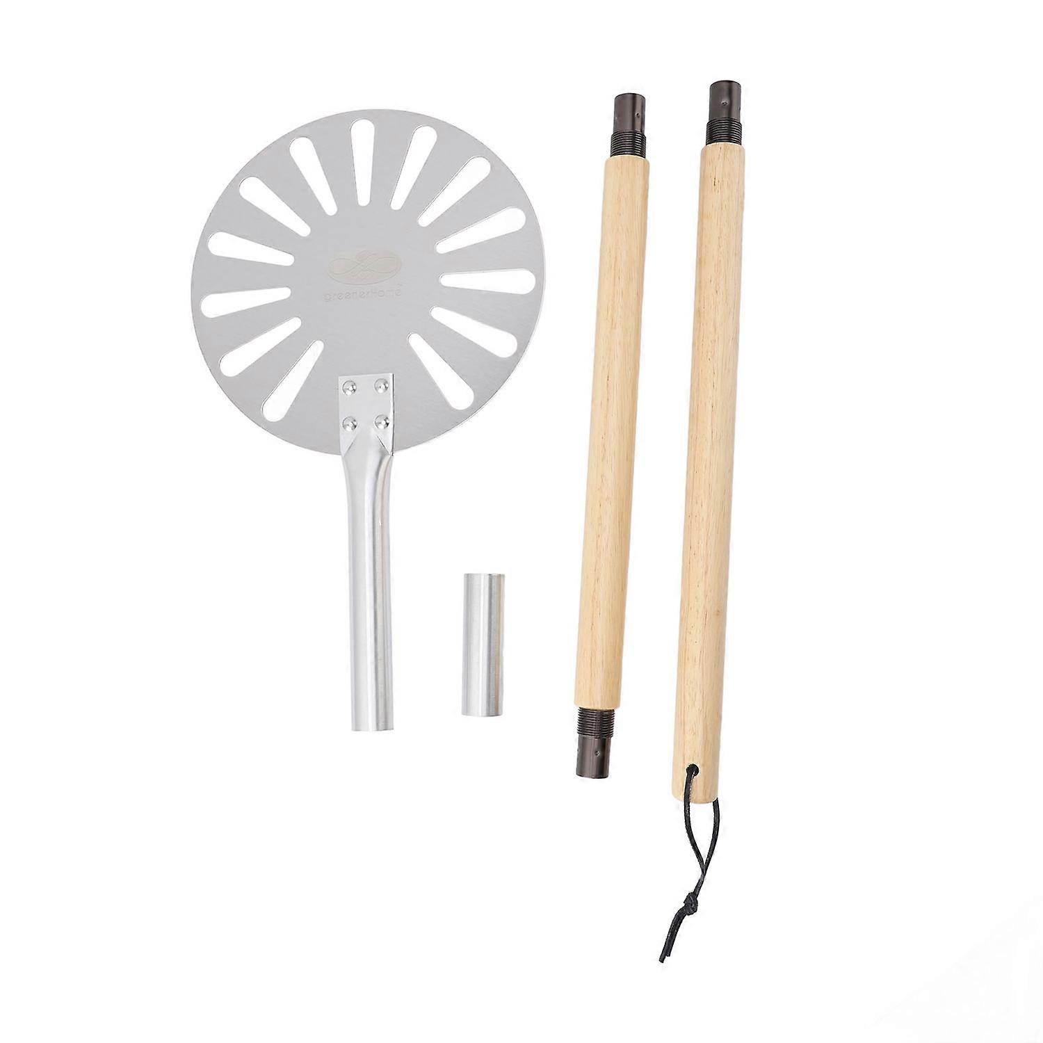 Feature: 1. STAINLESS STEEL: Pizza turning peel is made of premium stainless steel to protect the surface from oxidation. It is not only heat resistant, but also wear and scratch resistant. 2. LONG HANDLE: Perforated pizza turner has 79cm and 120cm flexible adjustable handles that provide precise control and easy turning ability to turn the pizza peel. 3. NON SLIP: The Pizza turner has insulated nonslip grips that instantly provide extra grip and protecting to keep your hands away from heat sources. Easily put pizzas in and out of the oven. 4. PERFORATED DESIGN: The pizza spatula features perforated holes to reduce friction and allow excess flour to come off easily, making the bottom of the pizza crisper and tastier and keeping the oven clean. 5. REMOVABLE HANDLE: This pizza peeling handle is removable design, you can store and carry it when you go out, suitable for baking pizza outdoors with your family. It is a perfect pizza oven accessory or present for pizza lovers. Specification: Item Type: Pizza Turning Peel Material: Stainless Steel, Logs Spatula Diameter: Approx. 23cm/9.1in Gross Weight: 975g/2.1lb. Package List: 1 x Spatula2 x Handles1 x Connecting Accessories Note: All data are measured manually, and there are certain errors in the measurement results.