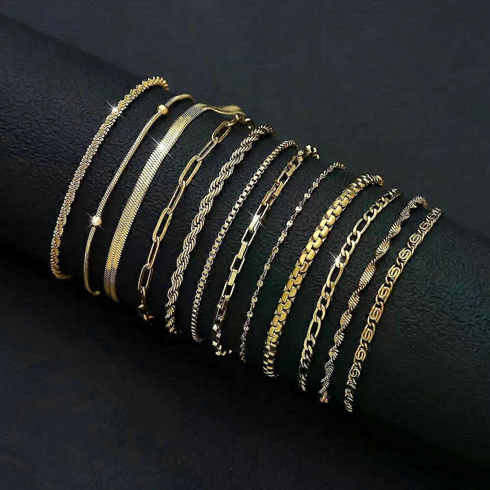 12Pcs/Set Stainless Steel Bracelet for Women Silver Gold Color Multi Style Combination Chain Waterproof Exquisite Jewelry Gift