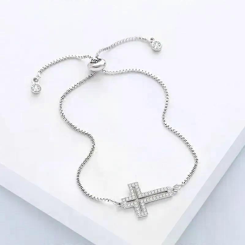 Stylish Copper Set Zirconium Cross Bracelet Men s AND WOMEN S Gold Silver Color Simple Adjustable Chain Bracelet Party Jewelry