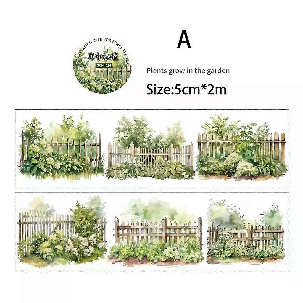 50mm*2m Fence Plant Series Decor Tapes for Junk Journal Waterproof PET DIY Scrapbooking Collage Photo Album Stationery
