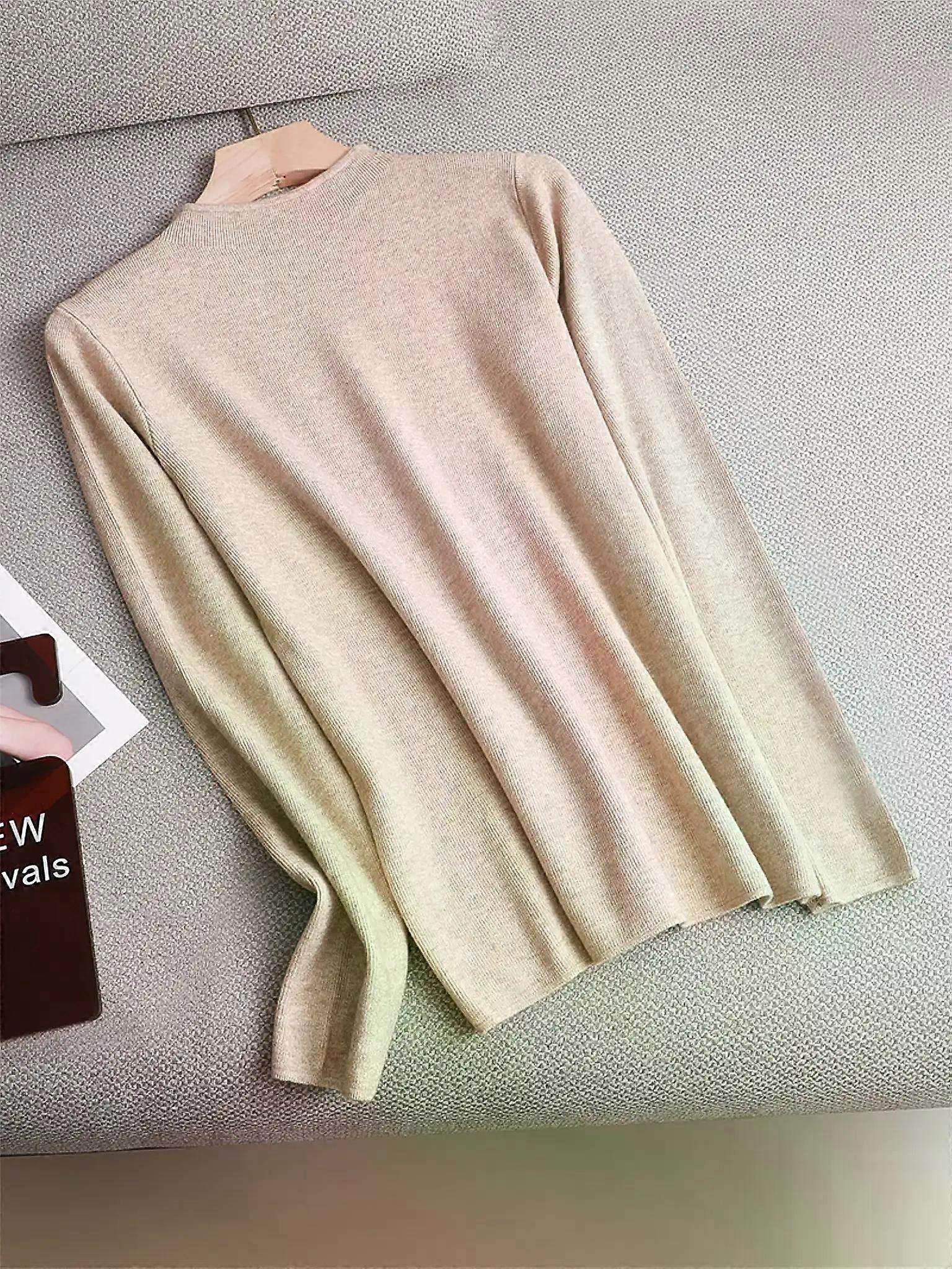 Bacis Sweater Women s Mock Neck Pullover Sweater Knitted Autumn Winter New Solid Color Outer Wear All-Match Bottom Top