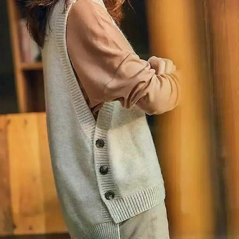 Fashion knit sweater vest College style under three-button solid color crew neck casual all-match pullover sweater for women