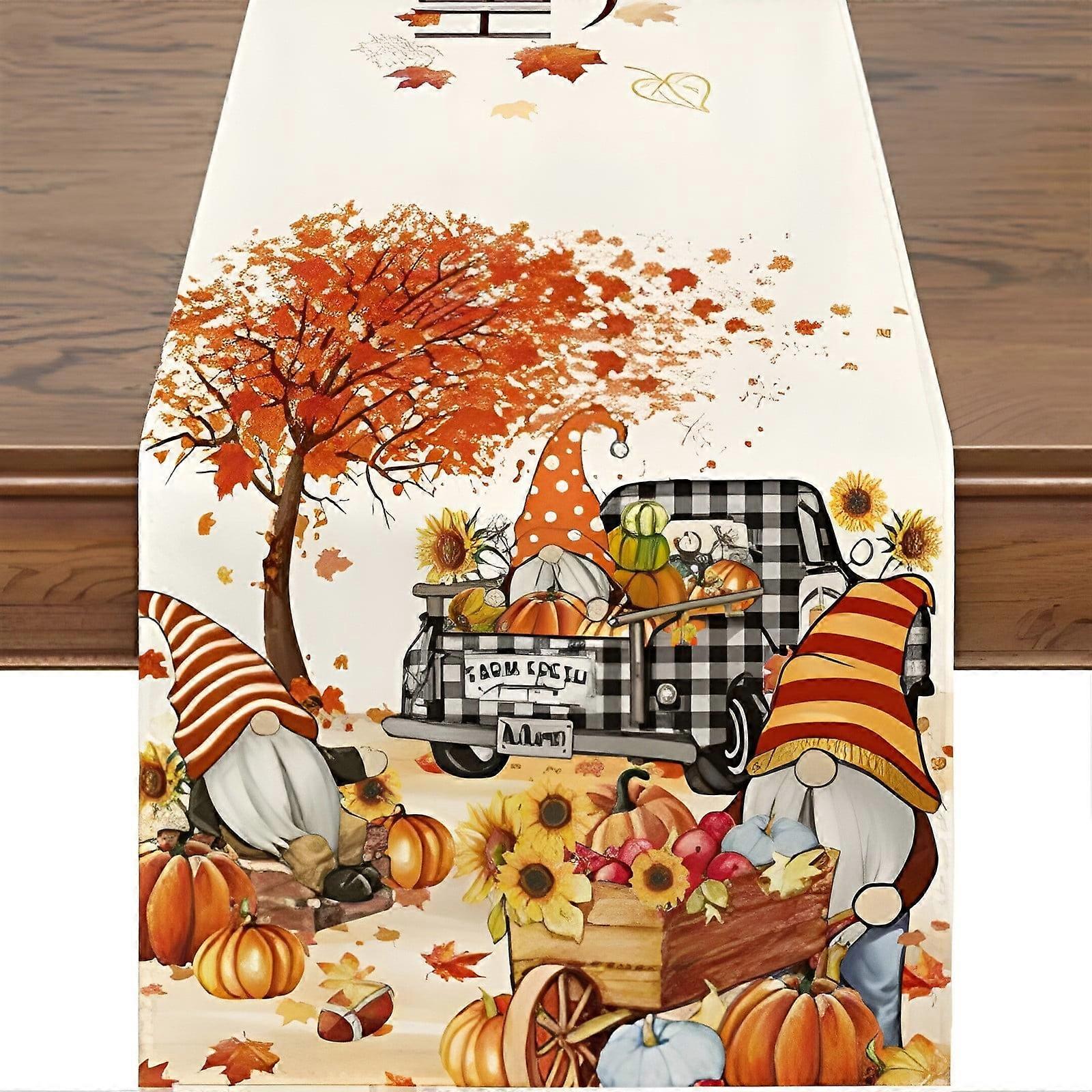 Thanksgiving Fall Table Runner 13x72 in, Pumpkins & Maple Leaves, Orange/Beige, for Autumn, Halloween, Home Party Decor