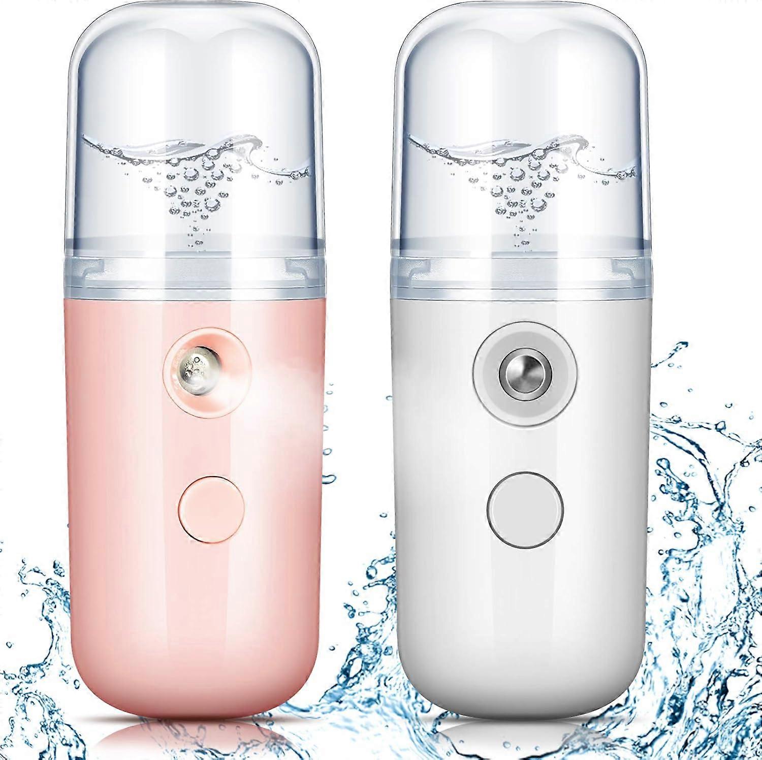 Pack of 2 Mini Facial Mists, 30 ml, Portable, USB Steamer for Facial Hydration (White and Light Pink)