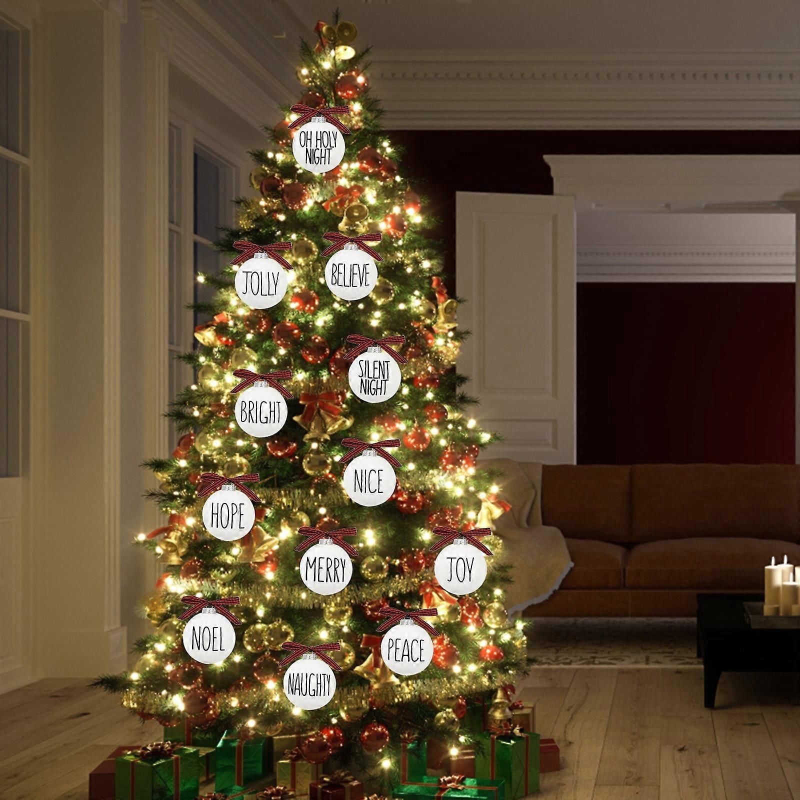 Christmas Ornaments, Xmas Tree Decorations, Set of 12 Shatterproof Bulbs with đuffalo Plaid Bows, White Holiday đalls Rustic Farmhouse Decor