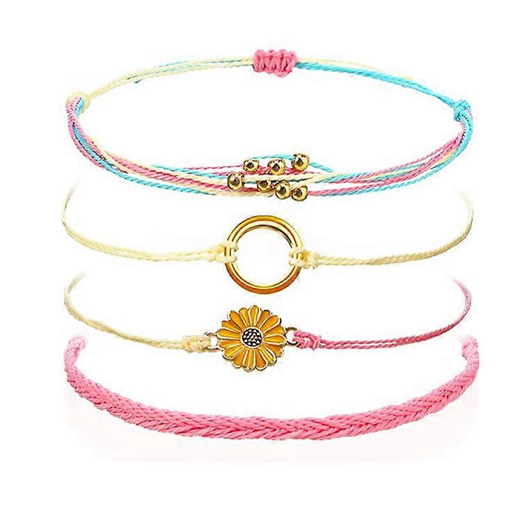 Sunflower Daisy Braided Rope Bracelet, Bohemian Beach Waves Couple Hand Jewellery, Adjustable Handmade Summer Bracelet Anklet, Multicolor