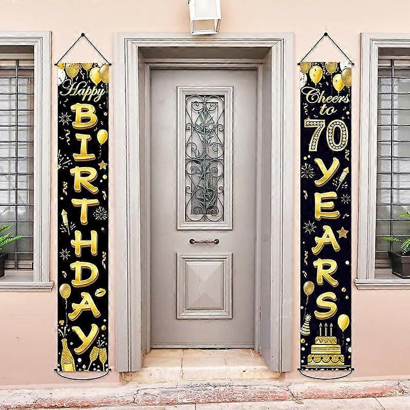 70th Birthday Party Banner Decorations Cheers to 70 Years Banner 70th Party Supplies Black Gold Welcome Porch Sign for Indoor Outdoor
