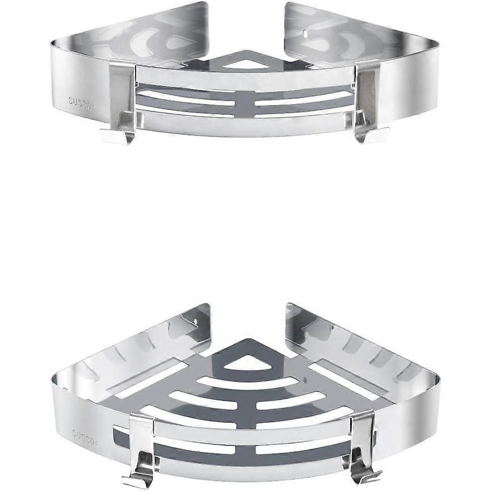 Corner Shower Shelf, 2 Pack Corner Shelves with Hooks, Self-Adhesive Glue, Stainless Steel