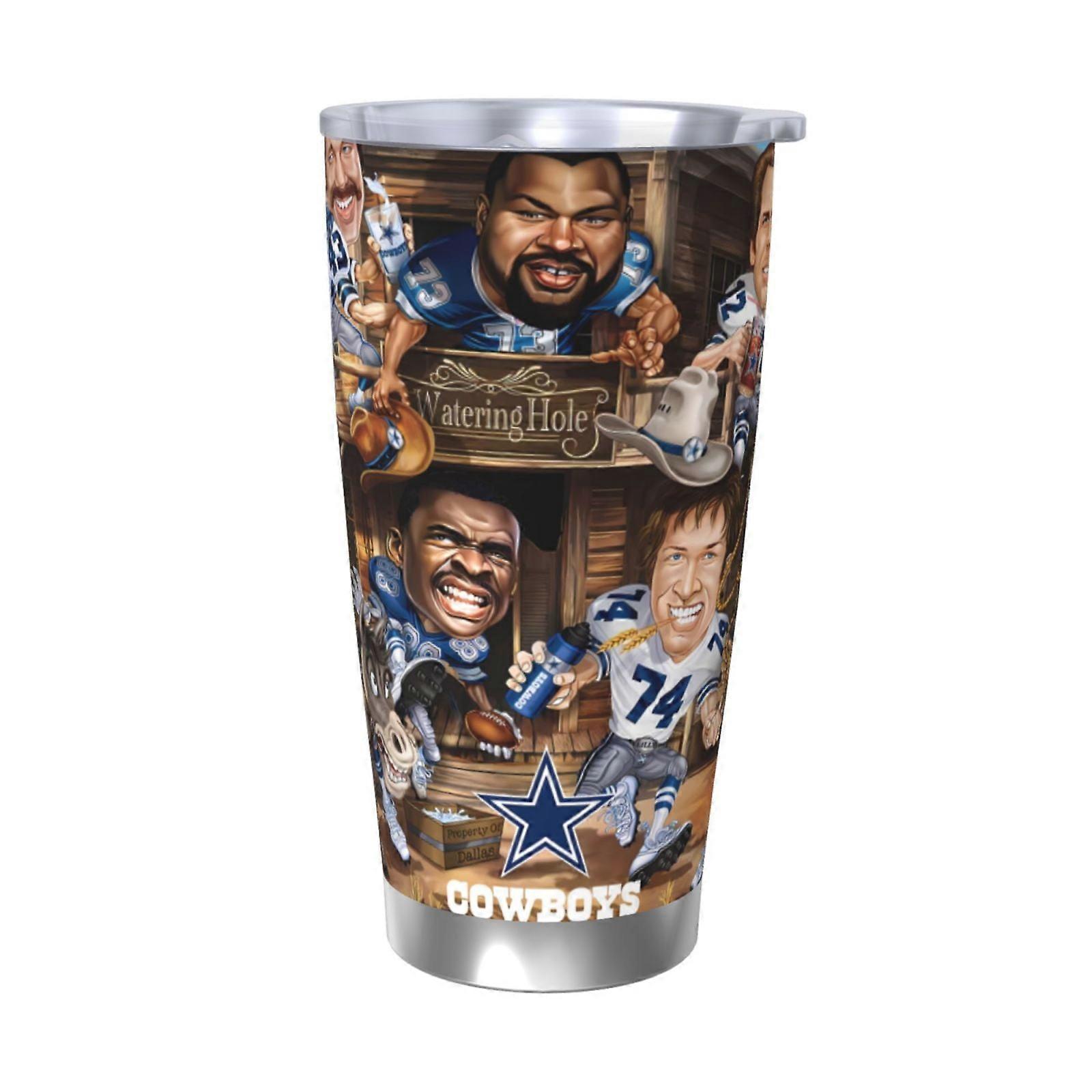Cowboys Football Team 304 Stainless Steel Thermos Cup 20oz with Lid & Straw, Compatible with Car Cup Holders, Hot & Cold Drinks, Coffee, Sports,